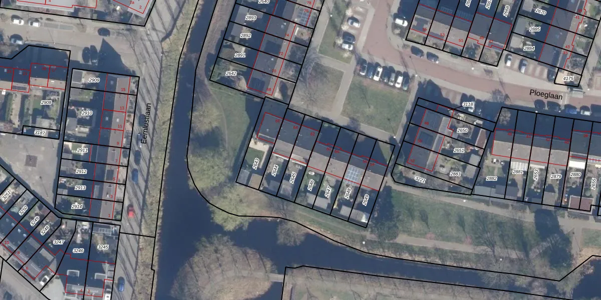 Ploeglaan 62 is gelegen op kadastraal perceel ENS00G2645. Deze kadastrale aanduiding is uniek en wordt gebruikt door het Kadaster om eigendomsrechten en andere zakelijke rechten vast te leggen. Het perceel maakt onderdeel uit van de kadastrale gemeente Eemnes.