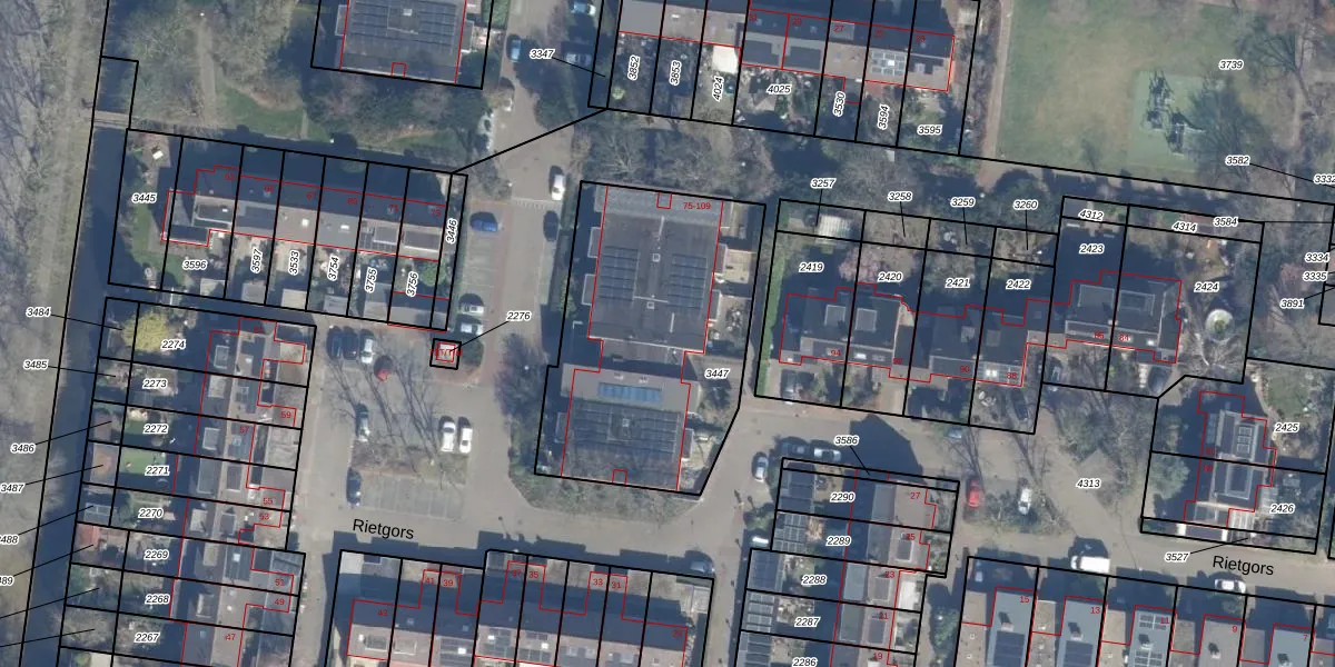 Het perceel waarop Rietgors 101 staat heeft een oppervlakte van 1230 m². Dit is een zeer groot perceel. De perceeloppervlakte wordt geregistreerd door het Kadaster. Gedetailleerde informatie over de maten van dit perceel kunt u vinden in het rapport Kadastrale kaart met maatvoering van Rietgors 101.