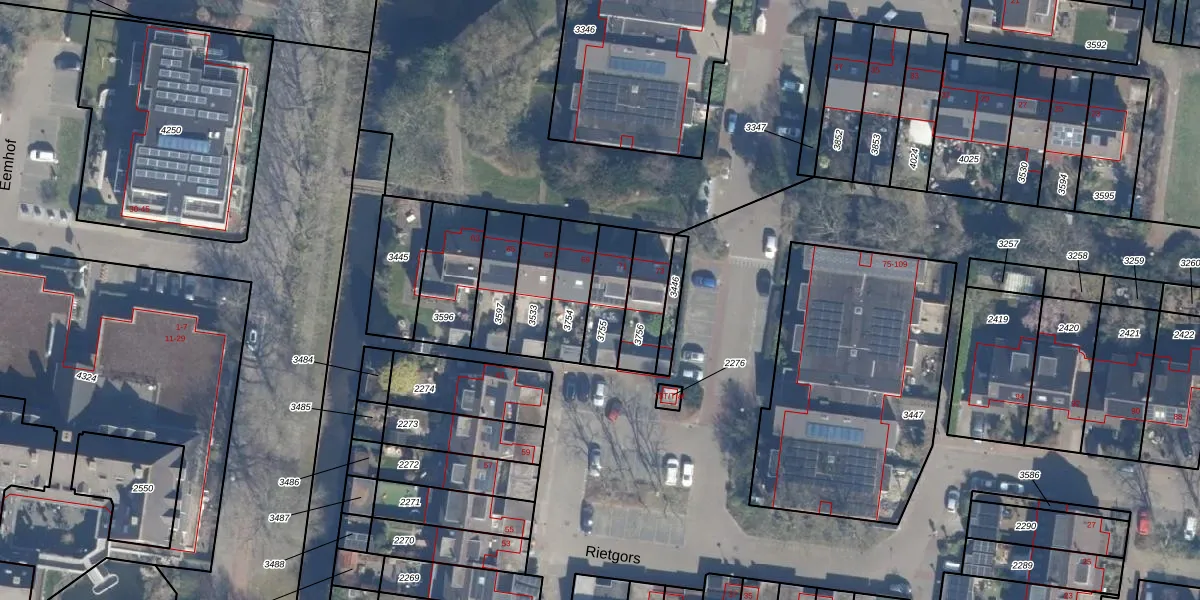 Rietgors 71 is gelegen op kadastraal perceel ENS00A3755. Deze kadastrale aanduiding is uniek en wordt gebruikt door het Kadaster om eigendomsrechten en andere zakelijke rechten vast te leggen. Het perceel maakt onderdeel uit van de kadastrale gemeente Eemnes.