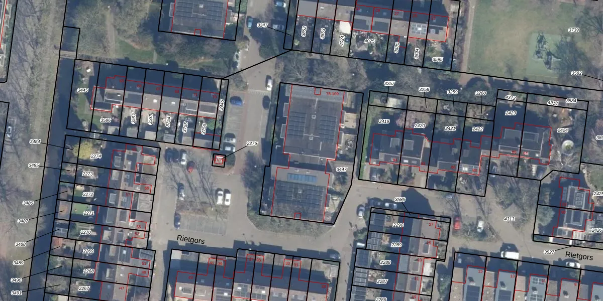 Het perceel waarop Rietgors 91 staat heeft een oppervlakte van 1230 m². Dit is een zeer groot perceel. De perceeloppervlakte wordt geregistreerd door het Kadaster. Gedetailleerde informatie over de maten van dit perceel kunt u vinden in het rapport Kadastrale kaart met maatvoering van Rietgors 91.