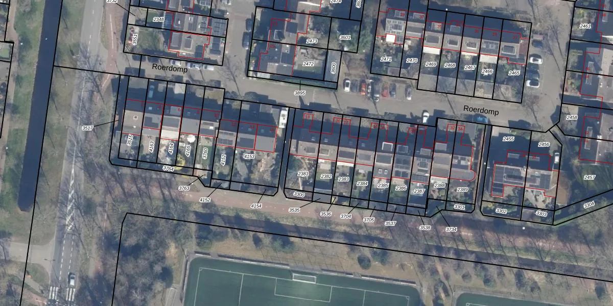 Het perceel waarop Roerdomp 18 staat heeft een oppervlakte van 250 m². Dit is een middelgroot perceel. De perceeloppervlakte wordt geregistreerd door het Kadaster. Gedetailleerde informatie over de maten van dit perceel kunt u vinden in het rapport Kadastrale kaart met maatvoering van Roerdomp 18.