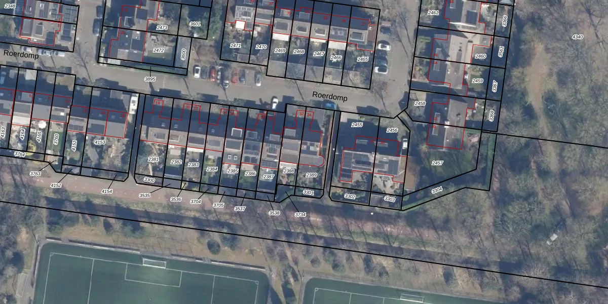 Gebruik de zoekbalk of klik op een perceel voor informatie over de adressen binnen dit perceel.