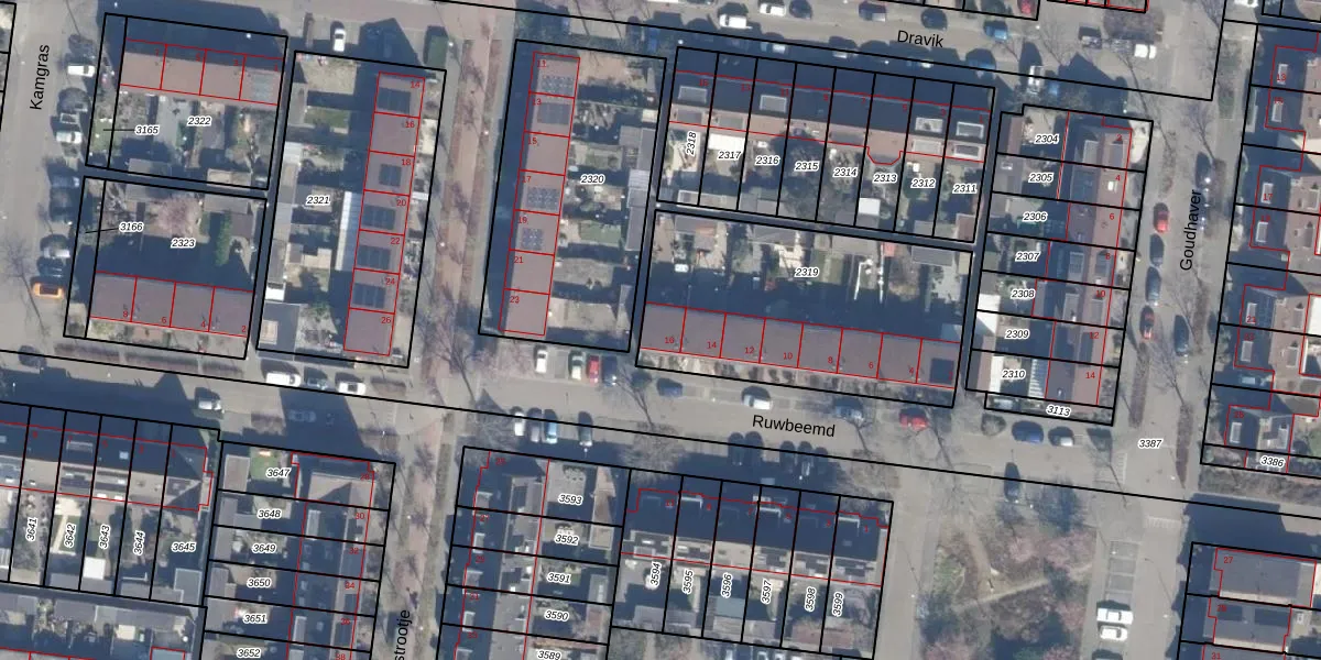 Het perceel waarop Ruwbeemd 16 staat heeft een oppervlakte van 1155 m². Dit is een zeer groot perceel. De perceeloppervlakte wordt geregistreerd door het Kadaster. Gedetailleerde informatie over de maten van dit perceel kunt u vinden in het rapport Kadastrale kaart met maatvoering van Ruwbeemd 16.