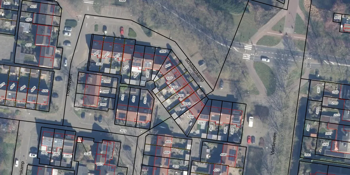 Gebruik de zoekbalk of klik op een perceel voor informatie over de adressen binnen dit perceel.