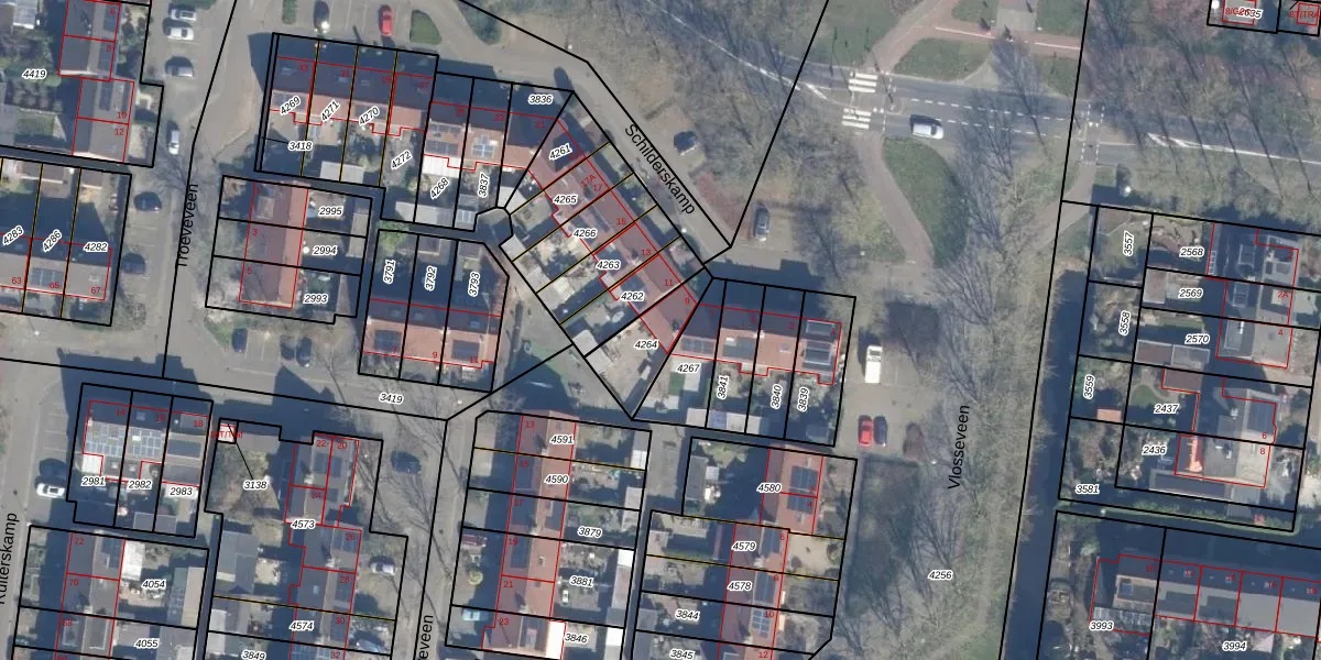 Gebruik de zoekbalk of klik op een perceel voor informatie over de adressen binnen dit perceel.