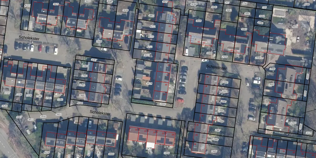 Het perceel waarop Scholekster 51 staat heeft een oppervlakte van 659 m². Dit is een groot perceel. De perceeloppervlakte wordt geregistreerd door het Kadaster. Gedetailleerde informatie over de maten van dit perceel kunt u vinden in het rapport Kadastrale kaart met maatvoering van Scholekster 51.