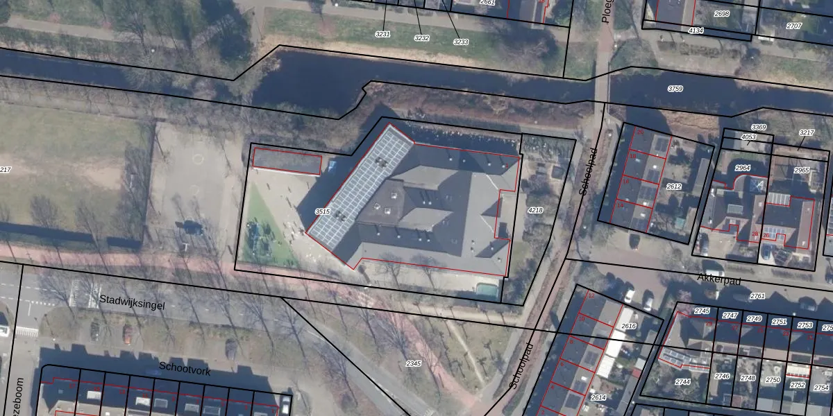 Het perceel waarop Schoolpad 1 staat heeft een oppervlakte van 2370 m². Dit is een zeer groot perceel. De perceeloppervlakte wordt geregistreerd door het Kadaster. Gedetailleerde informatie over de maten van dit perceel kunt u vinden in het rapport Kadastrale kaart met maatvoering van Schoolpad 1.