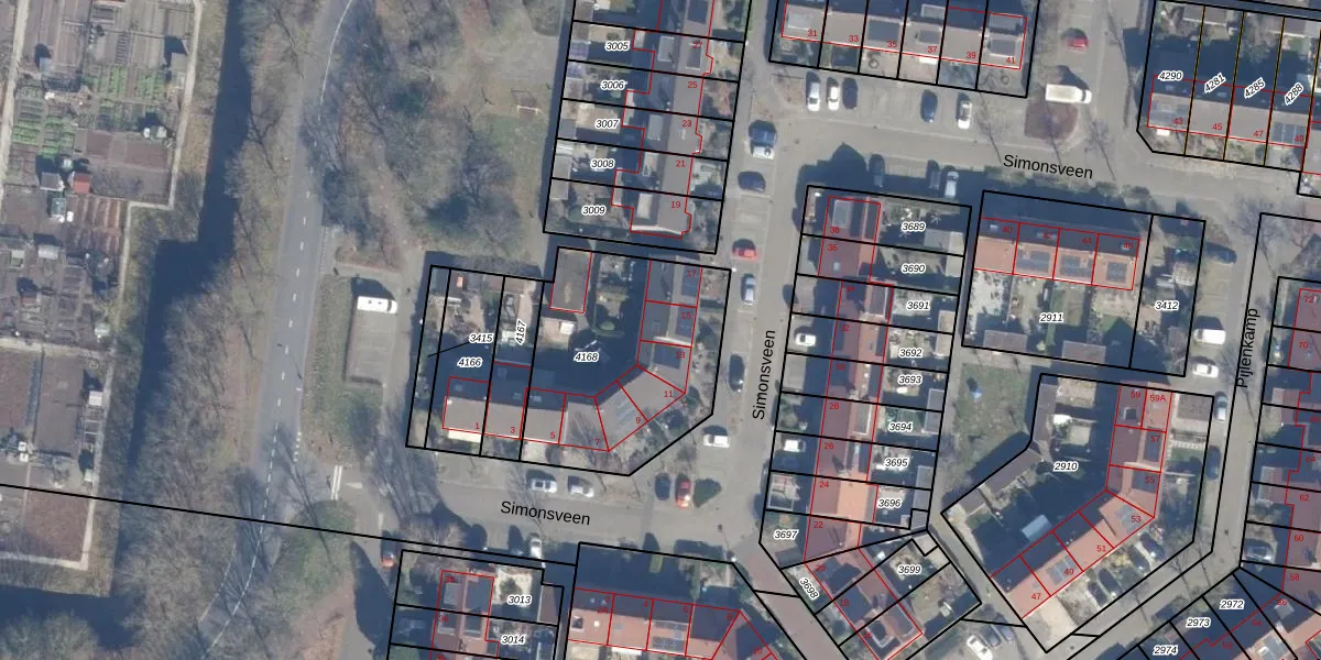Het perceel waarop Simonsveen 15 staat heeft een oppervlakte van 845 m². Dit is een groot perceel. De perceeloppervlakte wordt geregistreerd door het Kadaster. Gedetailleerde informatie over de maten van dit perceel kunt u vinden in het rapport Kadastrale kaart met maatvoering van Simonsveen 15.