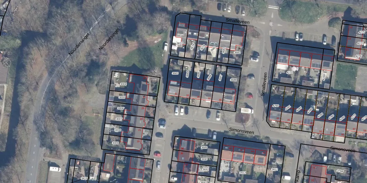 Simonsveen 33 is gelegen op kadastraal perceel ENS00A3684. Deze kadastrale aanduiding is uniek en wordt gebruikt door het Kadaster om eigendomsrechten en andere zakelijke rechten vast te leggen. Het perceel maakt onderdeel uit van de kadastrale gemeente Eemnes.
