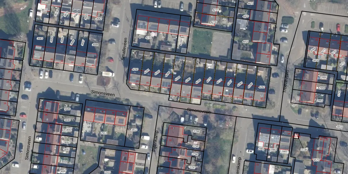 Het perceel waarop Simonsveen 51 staat heeft een oppervlakte van 163 m². Dit is een middelgroot perceel. De perceeloppervlakte wordt geregistreerd door het Kadaster. Gedetailleerde informatie over de maten van dit perceel kunt u vinden in het rapport Kadastrale kaart met maatvoering van Simonsveen 51.