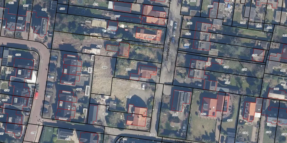 Het perceel waarop Streefoordlaan 14 staat heeft een oppervlakte van 437 m². Dit is een groot perceel. De perceeloppervlakte wordt geregistreerd door het Kadaster. Gedetailleerde informatie over de maten van dit perceel kunt u vinden in het rapport Kadastrale kaart met maatvoering van Streefoordlaan 14.