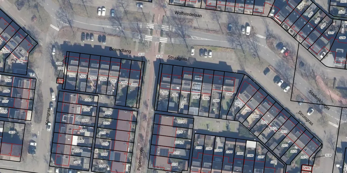 Het perceel waarop Struisgras 29 staat heeft een oppervlakte van 165 m². Dit is een middelgroot perceel. De perceeloppervlakte wordt geregistreerd door het Kadaster. Gedetailleerde informatie over de maten van dit perceel kunt u vinden in het rapport Kadastrale kaart met maatvoering van Struisgras 29.