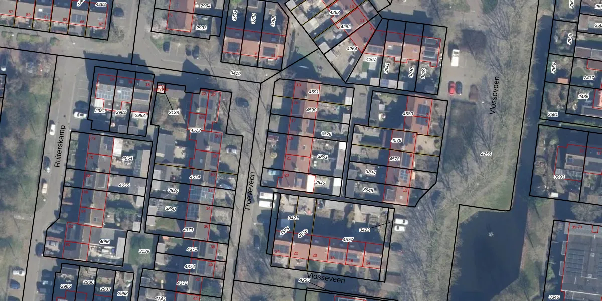 Het perceel waarop Troeveveen 19 staat heeft een oppervlakte van 320 m². Dit is een groot perceel. De perceeloppervlakte wordt geregistreerd door het Kadaster. Gedetailleerde informatie over de maten van dit perceel kunt u vinden in het rapport Kadastrale kaart met maatvoering van Troeveveen 19.