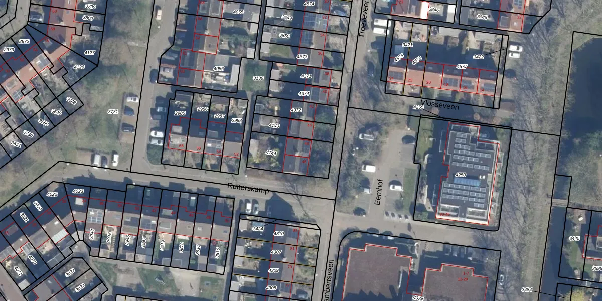 Troeveveen 46 is gelegen op kadastraal perceel ENS00A4144. Deze kadastrale aanduiding is uniek en wordt gebruikt door het Kadaster om eigendomsrechten en andere zakelijke rechten vast te leggen. Het perceel maakt onderdeel uit van de kadastrale gemeente Eemnes.