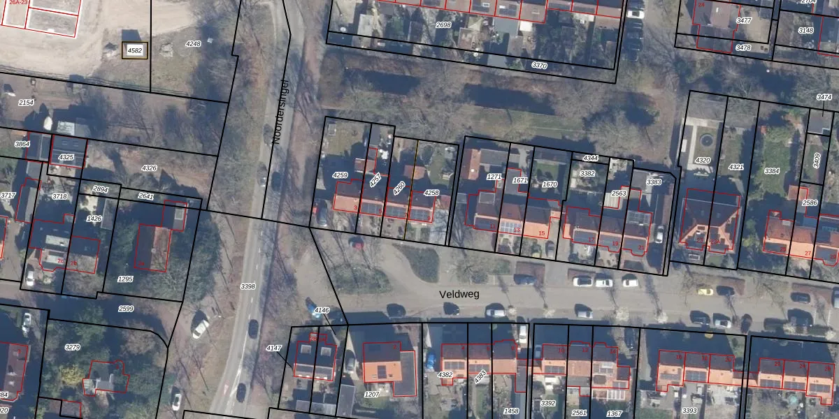 Het perceel waarop Veldweg 9 staat heeft een oppervlakte van 235 m². Dit is een middelgroot perceel. De perceeloppervlakte wordt geregistreerd door het Kadaster. Gedetailleerde informatie over de maten van dit perceel kunt u vinden in het rapport Kadastrale kaart met maatvoering van Veldweg 9.