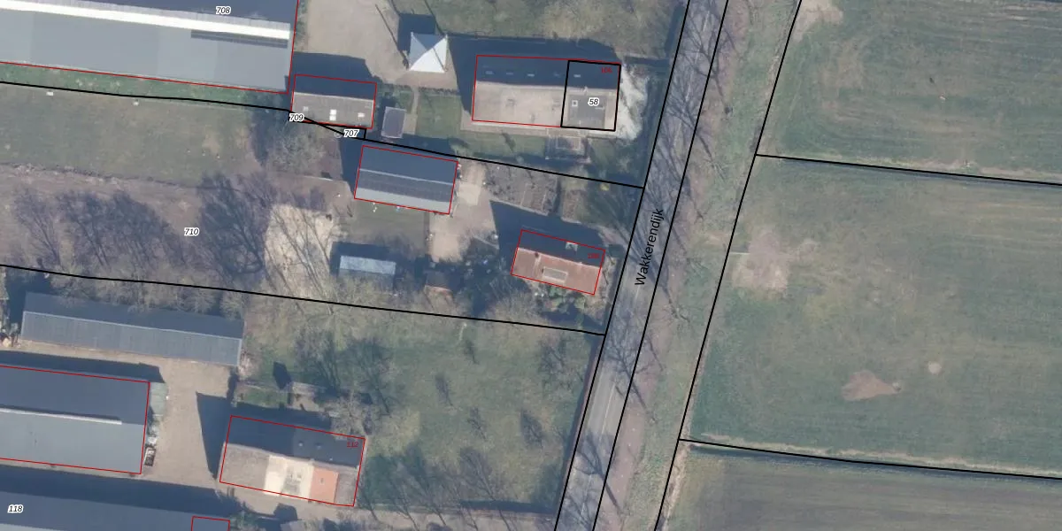 Wakkerendijk 108 is gelegen op kadastraal perceel ENS00L710. Deze kadastrale aanduiding is uniek en wordt gebruikt door het Kadaster om eigendomsrechten en andere zakelijke rechten vast te leggen. Het perceel maakt onderdeel uit van de kadastrale gemeente Eemnes.