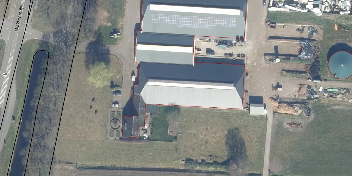 Het perceel waarop Wakkerendijk 61 staat heeft een oppervlakte van 9,5 ha. Dit is een zeer groot perceel. De perceeloppervlakte wordt geregistreerd door het Kadaster. Gedetailleerde informatie over de maten van dit perceel kunt u vinden in het rapport Kadastrale kaart met maatvoering van Wakkerendijk 61.