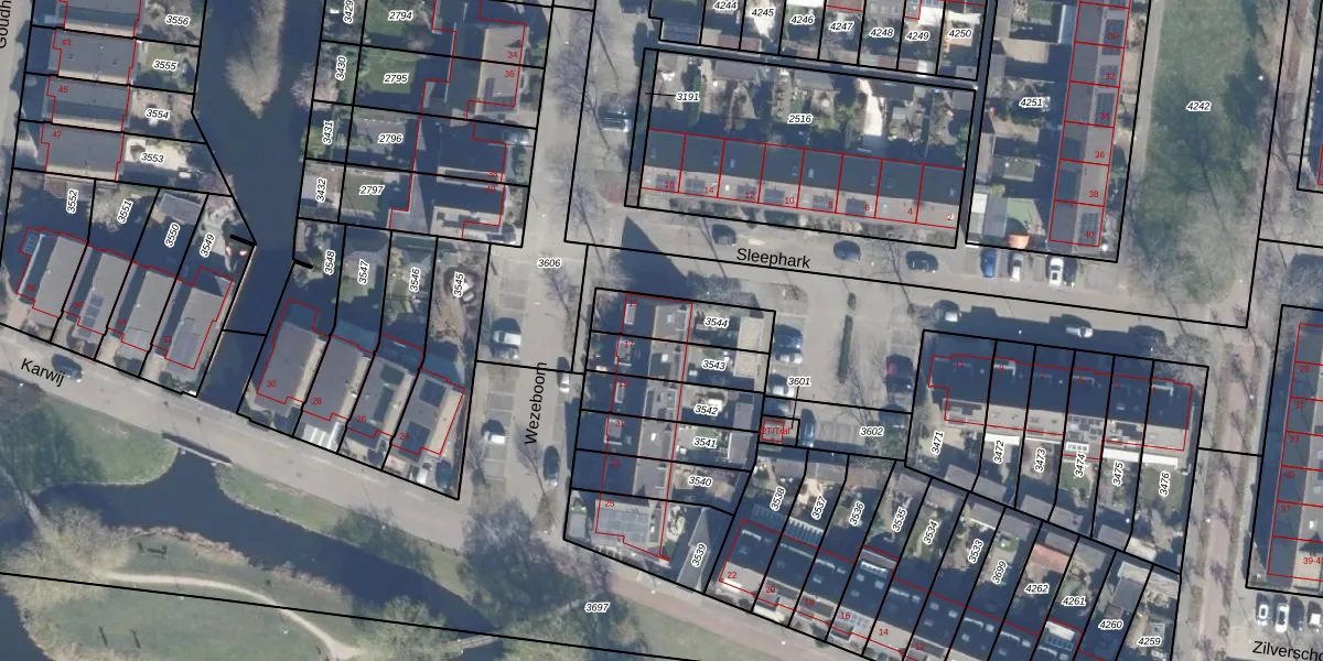 Gebruik de zoekbalk of klik op een perceel voor informatie over de adressen binnen dit perceel.