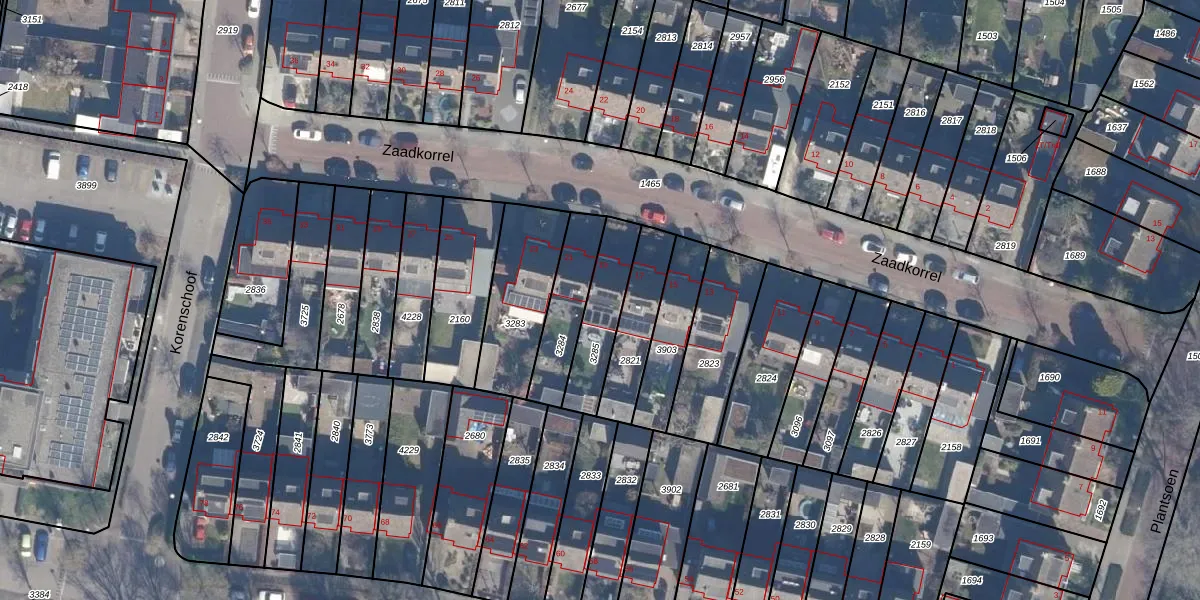 Gebruik de zoekbalk of klik op een perceel voor informatie over de adressen binnen dit perceel.
