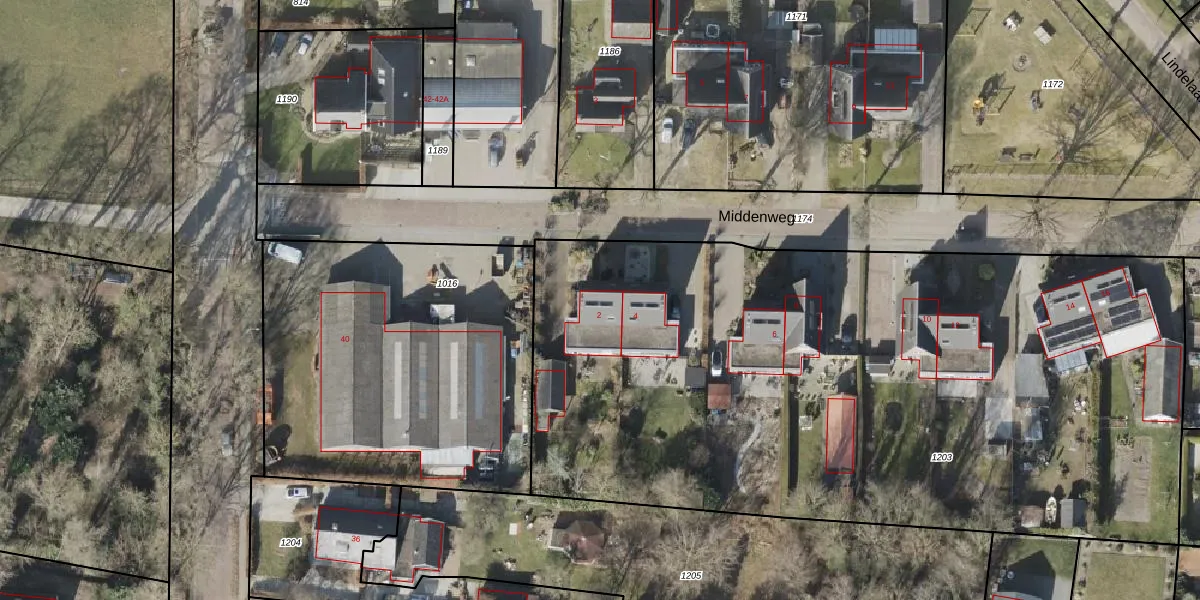 Het perceel waarop Middenweg 2 staat heeft een oppervlakte van 4915 m². Dit is een zeer groot perceel. De perceeloppervlakte wordt geregistreerd door het Kadaster. Gedetailleerde informatie over de maten van dit perceel kunt u vinden in het rapport Kadastrale kaart met maatvoering van Middenweg 2.