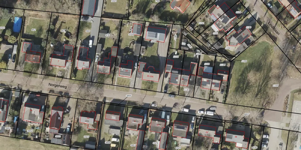 Het perceel waarop Norgerweg 15 staat heeft een oppervlakte van 826 m². Dit is een groot perceel. De perceeloppervlakte wordt geregistreerd door het Kadaster. Gedetailleerde informatie over de maten van dit perceel kunt u vinden in het rapport Kadastrale kaart met maatvoering van Norgerweg 15.
