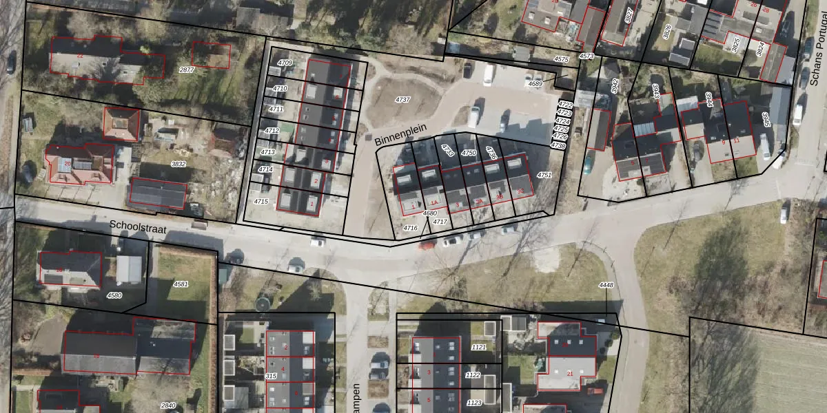 Schoolstraat 1 is gelegen op kadastraal perceel NOR00N4716. Deze kadastrale aanduiding is uniek en wordt gebruikt door het Kadaster om eigendomsrechten en andere zakelijke rechten vast te leggen. Het perceel maakt onderdeel uit van de kadastrale gemeente Norg.