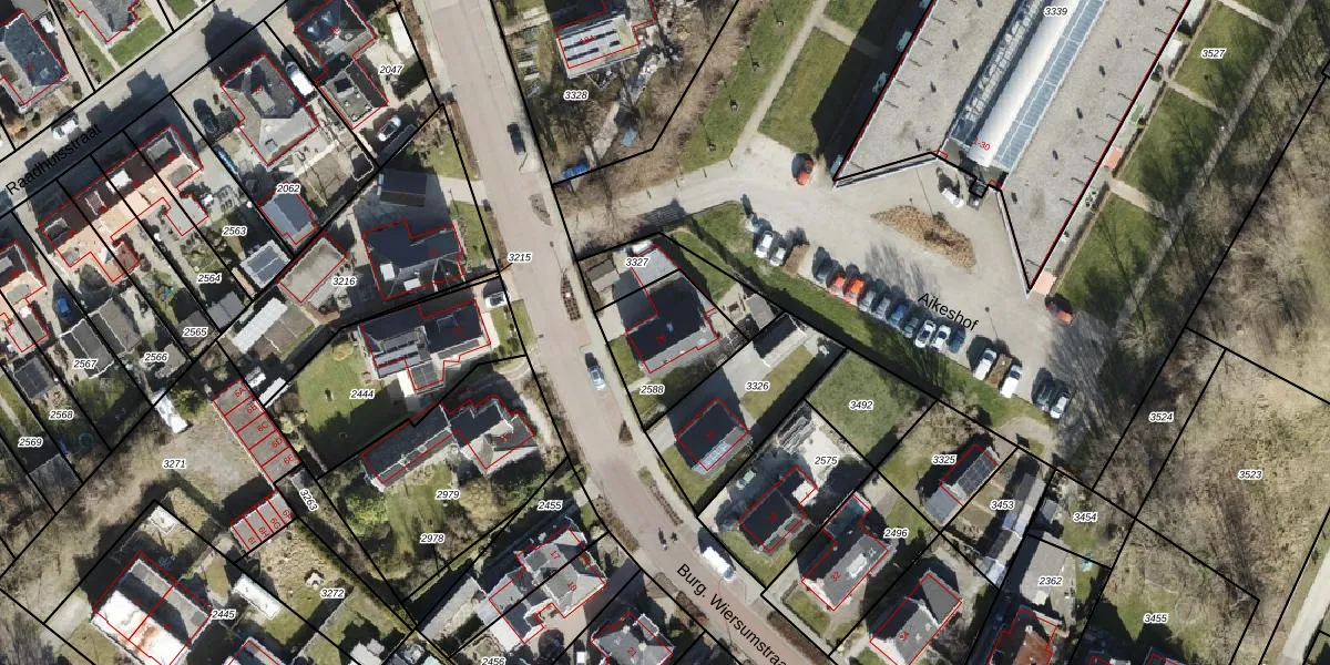 Gebruik de zoekbalk of klik op een perceel voor informatie over de adressen binnen dit perceel.