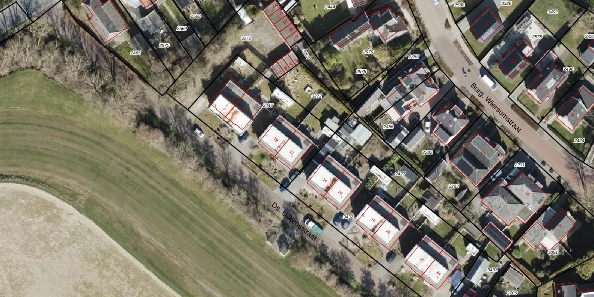 Ds. Uilkensstraat 12 is gelegen op kadastraal perceel ERM00B2445. Deze kadastrale aanduiding is uniek en wordt gebruikt door het Kadaster om eigendomsrechten en andere zakelijke rechten vast te leggen. Het perceel maakt onderdeel uit van de kadastrale gemeente Eenrum.
