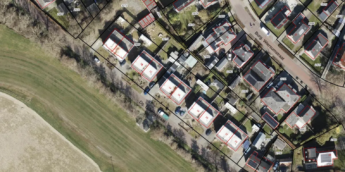 Het perceel waarop Ds. Uilkensstraat 14 staat heeft een oppervlakte van 1627 m². Dit is een zeer groot perceel. De perceeloppervlakte wordt geregistreerd door het Kadaster. Gedetailleerde informatie over de maten van dit perceel kunt u vinden in het rapport Kadastrale kaart met maatvoering van Ds. Uilkensstraat 14.