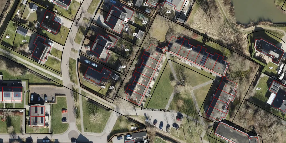 Het perceel waarop Ernstheemsterpad 7 staat heeft een oppervlakte van 3445 m². Dit is een zeer groot perceel. De perceeloppervlakte wordt geregistreerd door het Kadaster. Gedetailleerde informatie over de maten van dit perceel kunt u vinden in het rapport Kadastrale kaart met maatvoering van Ernstheemsterpad 7.