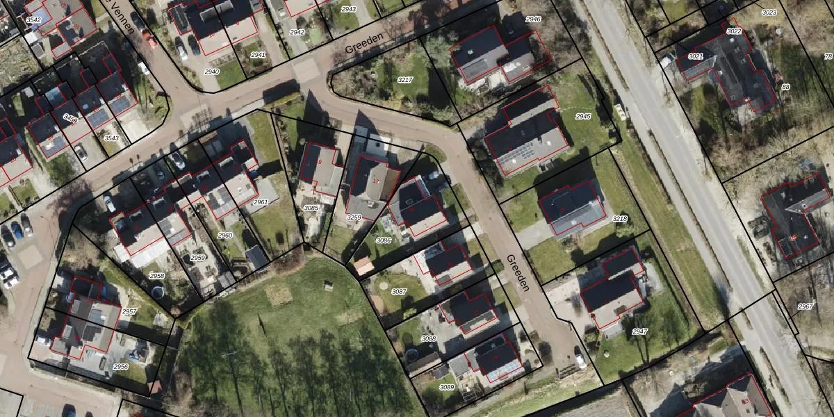 Het perceel waarop Greeden 15 staat heeft een oppervlakte van 412 m². Dit is een groot perceel. De perceeloppervlakte wordt geregistreerd door het Kadaster. Gedetailleerde informatie over de maten van dit perceel kunt u vinden in het rapport Kadastrale kaart met maatvoering van Greeden 15.