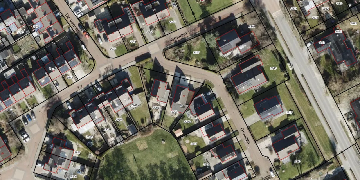Het perceel waarop Greeden 17 staat heeft een oppervlakte van 353 m². Dit is een groot perceel. De perceeloppervlakte wordt geregistreerd door het Kadaster. Gedetailleerde informatie over de maten van dit perceel kunt u vinden in het rapport Kadastrale kaart met maatvoering van Greeden 17.