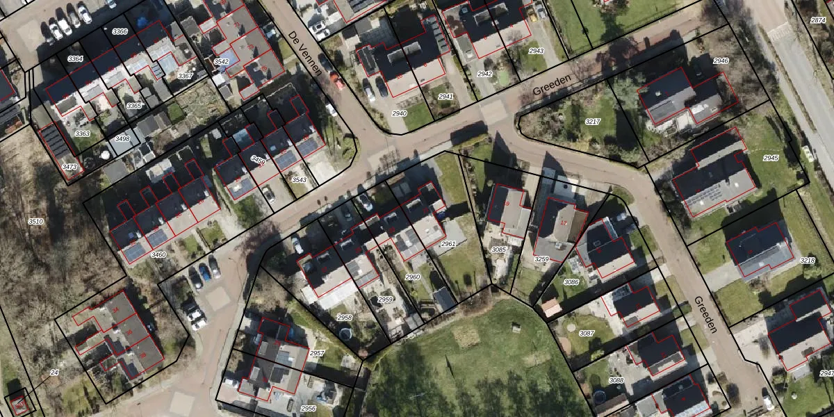 Het perceel waarop Greeden 21 staat heeft een oppervlakte van 478 m². Dit is een groot perceel. De perceeloppervlakte wordt geregistreerd door het Kadaster. Gedetailleerde informatie over de maten van dit perceel kunt u vinden in het rapport Kadastrale kaart met maatvoering van Greeden 21.