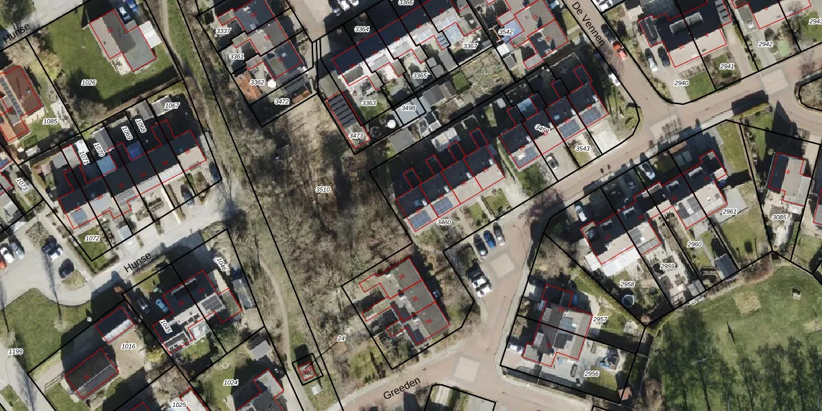 Het perceel waarop Greeden 32 staat heeft een oppervlakte van 1561 m². Dit is een zeer groot perceel. De perceeloppervlakte wordt geregistreerd door het Kadaster. Gedetailleerde informatie over de maten van dit perceel kunt u vinden in het rapport Kadastrale kaart met maatvoering van Greeden 32.