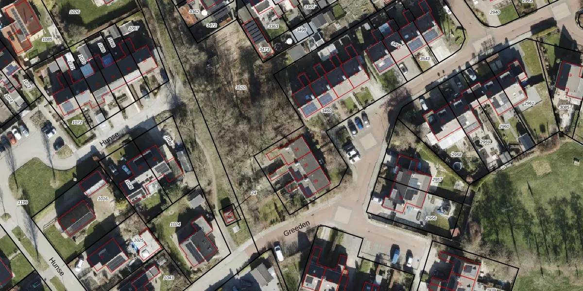 Het perceel waarop Greeden 34 staat heeft een oppervlakte van 1561 m². Dit is een zeer groot perceel. De perceeloppervlakte wordt geregistreerd door het Kadaster. Gedetailleerde informatie over de maten van dit perceel kunt u vinden in het rapport Kadastrale kaart met maatvoering van Greeden 34.