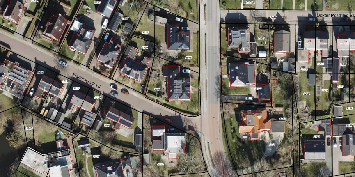 Gebruik de zoekbalk of klik op een perceel voor informatie over de adressen binnen dit perceel.