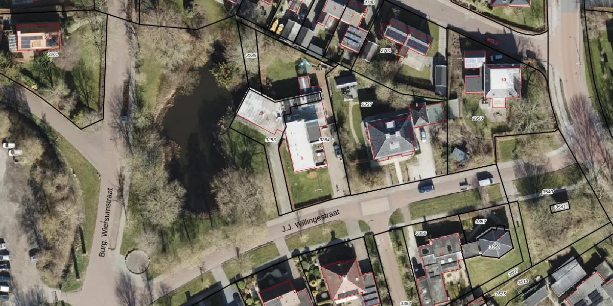 Het perceel waarop J.J. Willingestraat 8 staat heeft een oppervlakte van 972 m². Dit is een groot perceel. De perceeloppervlakte wordt geregistreerd door het Kadaster. Gedetailleerde informatie over de maten van dit perceel kunt u vinden in het rapport Kadastrale kaart met maatvoering van J.J. Willingestraat 8.