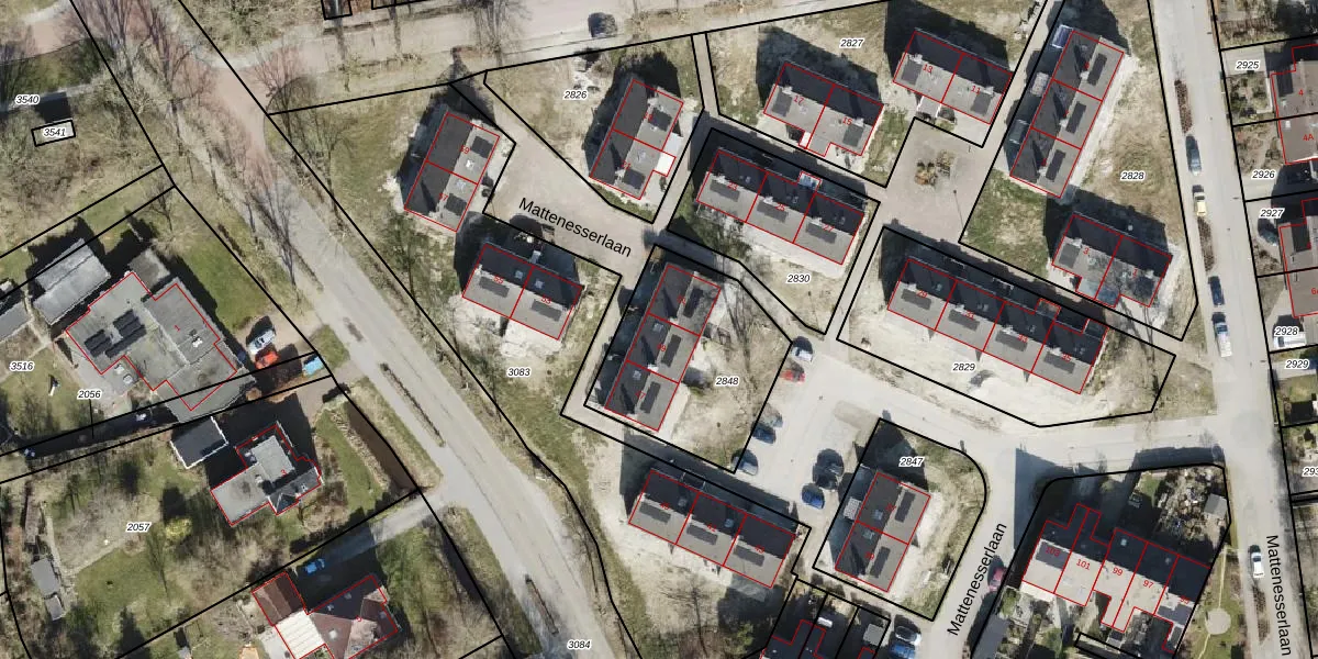 Het perceel waarop Mattenesserlaan 49 staat heeft een oppervlakte van 641 m². Dit is een groot perceel. De perceeloppervlakte wordt geregistreerd door het Kadaster. Gedetailleerde informatie over de maten van dit perceel kunt u vinden in het rapport Kadastrale kaart met maatvoering van Mattenesserlaan 49.