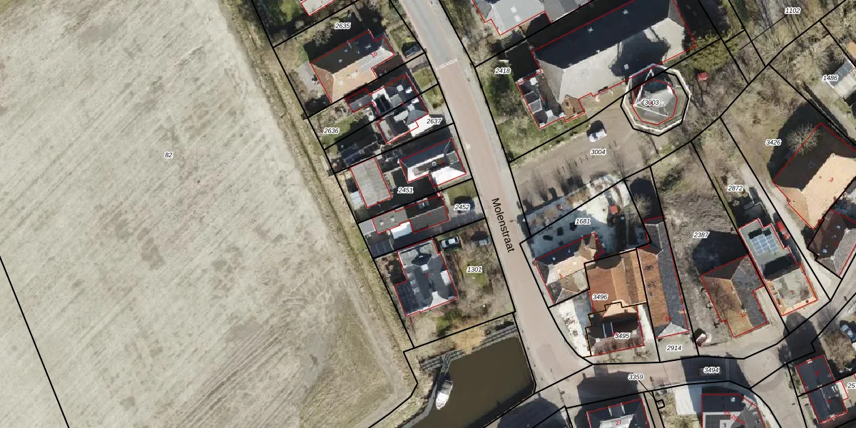 Het perceel waarop Molenstraat 4 staat heeft een oppervlakte van 260 m². Dit is een middelgroot perceel. De perceeloppervlakte wordt geregistreerd door het Kadaster. Gedetailleerde informatie over de maten van dit perceel kunt u vinden in het rapport Kadastrale kaart met maatvoering van Molenstraat 4.