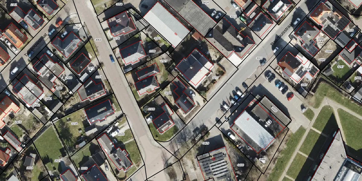 Het perceel waarop Raadhuisstraat 19 staat heeft een oppervlakte van 369 m². Dit is een groot perceel. De perceeloppervlakte wordt geregistreerd door het Kadaster. Gedetailleerde informatie over de maten van dit perceel kunt u vinden in het rapport Kadastrale kaart met maatvoering van Raadhuisstraat 19.
