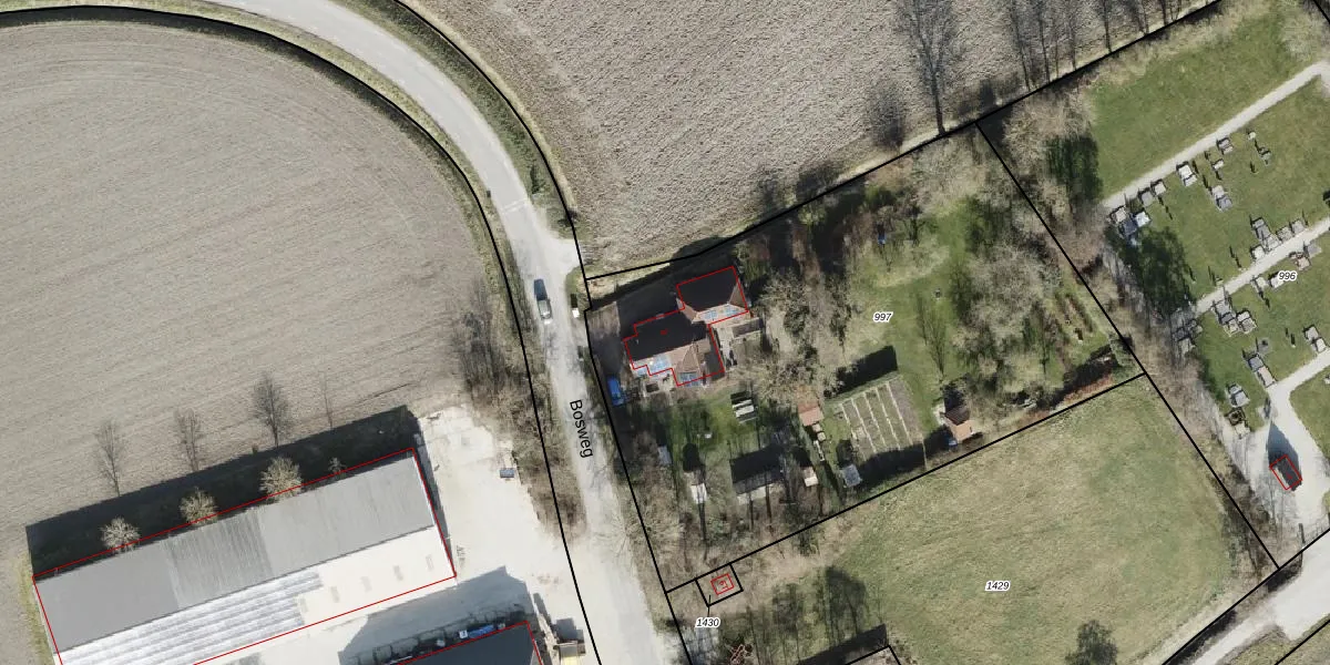 Het perceel waarop Bosweg 8 staat heeft een oppervlakte van 3230 m². Dit is een zeer groot perceel. De perceeloppervlakte wordt geregistreerd door het Kadaster. Gedetailleerde informatie over de maten van dit perceel kunt u vinden in het rapport Kadastrale kaart met maatvoering van Bosweg 8.