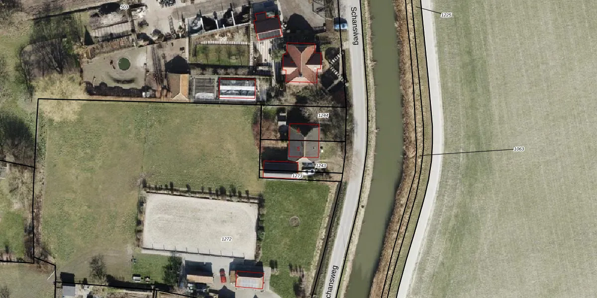 Het perceel waarop Schansweg 1-A staat heeft een oppervlakte van 294 m². Dit is een middelgroot perceel. De perceeloppervlakte wordt geregistreerd door het Kadaster. Gedetailleerde informatie over de maten van dit perceel kunt u vinden in het rapport Kadastrale kaart met maatvoering van Schansweg 1-A.
