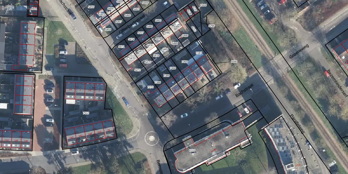 Gebruik de zoekbalk of klik op een perceel voor informatie over de adressen binnen dit perceel.