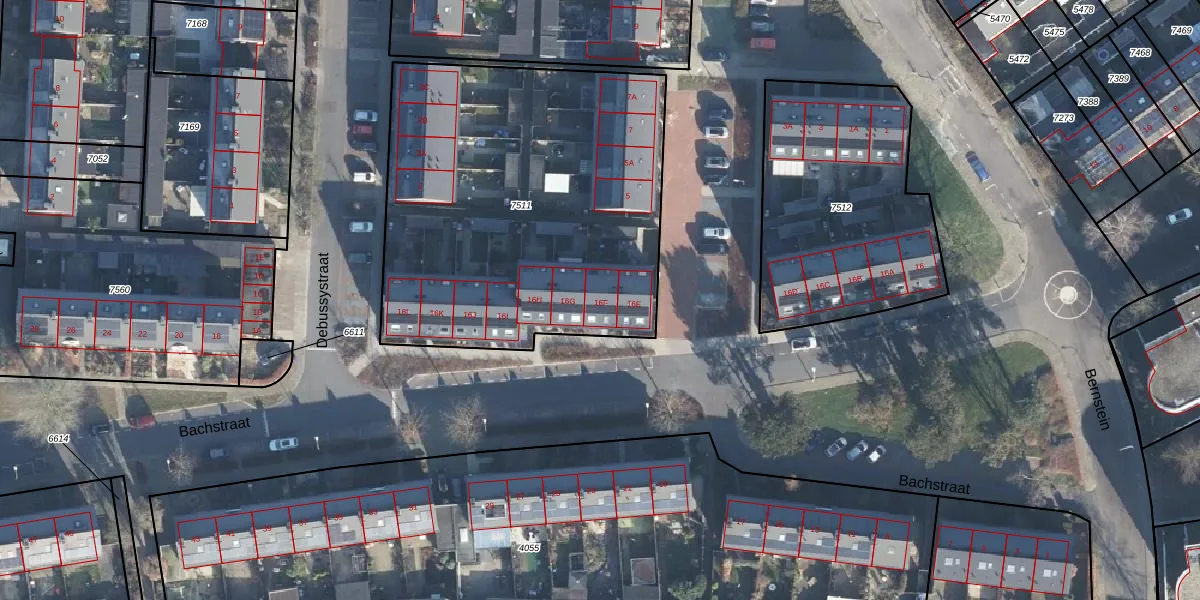 Het perceel waarop Bachstraat 16-F staat heeft een oppervlakte van 2085 m². Dit is een zeer groot perceel. De perceeloppervlakte wordt geregistreerd door het Kadaster. Gedetailleerde informatie over de maten van dit perceel kunt u vinden in het rapport Kadastrale kaart met maatvoering van Bachstraat 16-F.