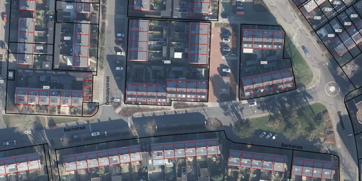Het perceel waarop Bachstraat 16-G staat heeft een oppervlakte van 2085 m². Dit is een zeer groot perceel. De perceeloppervlakte wordt geregistreerd door het Kadaster. Gedetailleerde informatie over de maten van dit perceel kunt u vinden in het rapport Kadastrale kaart met maatvoering van Bachstraat 16-G.