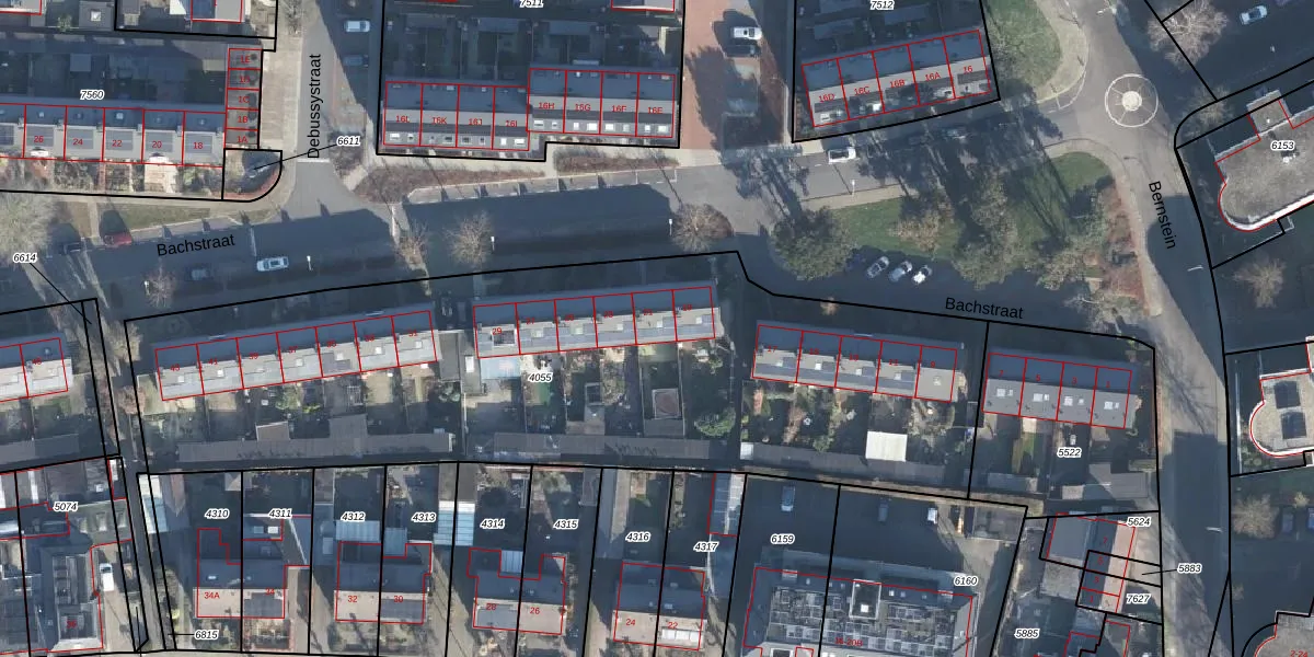 Het perceel waarop Bachstraat 21 staat heeft een oppervlakte van 3630 m². Dit is een zeer groot perceel. De perceeloppervlakte wordt geregistreerd door het Kadaster. Gedetailleerde informatie over de maten van dit perceel kunt u vinden in het rapport Kadastrale kaart met maatvoering van Bachstraat 21.