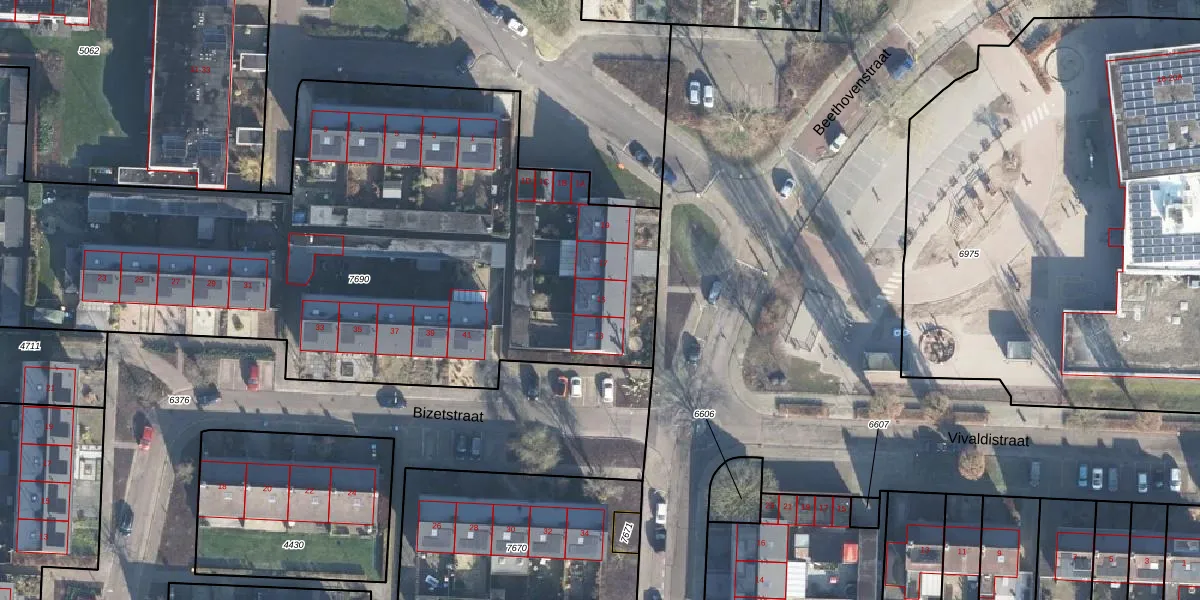 Het perceel waarop Beethovenstraat 15 staat heeft een oppervlakte van 4860 m². Dit is een zeer groot perceel. De perceeloppervlakte wordt geregistreerd door het Kadaster. Gedetailleerde informatie over de maten van dit perceel kunt u vinden in het rapport Kadastrale kaart met maatvoering van Beethovenstraat 15.