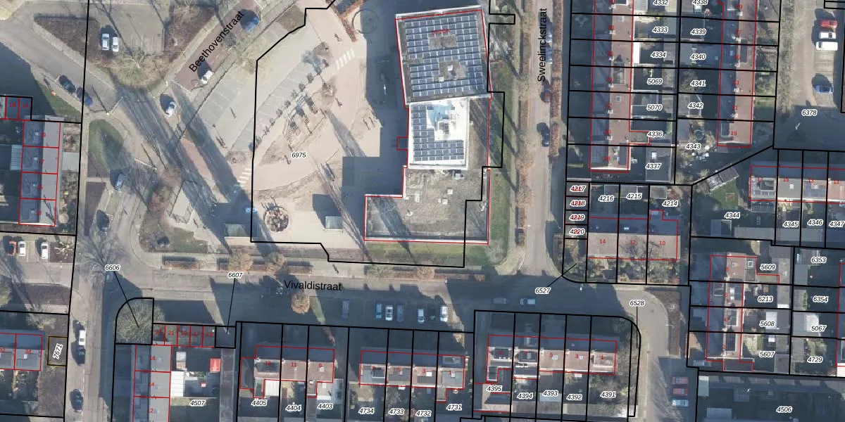 Het perceel waarop Beethovenstraat 18 staat heeft een oppervlakte van 3326 m². Dit is een zeer groot perceel. De perceeloppervlakte wordt geregistreerd door het Kadaster. Gedetailleerde informatie over de maten van dit perceel kunt u vinden in het rapport Kadastrale kaart met maatvoering van Beethovenstraat 18.