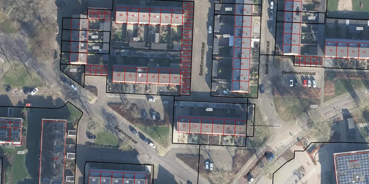 Het perceel waarop Beethovenstraat 21-A staat heeft een oppervlakte van 2787 m². Dit is een zeer groot perceel. De perceeloppervlakte wordt geregistreerd door het Kadaster. Gedetailleerde informatie over de maten van dit perceel kunt u vinden in het rapport Kadastrale kaart met maatvoering van Beethovenstraat 21-A.