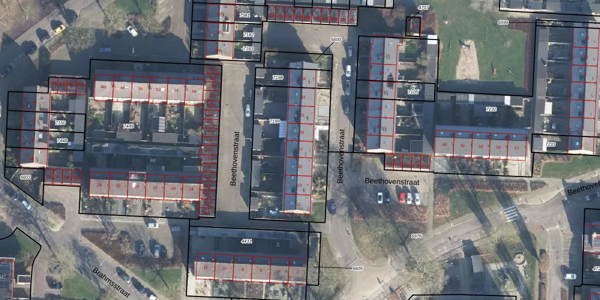 Het perceel waarop Beethovenstraat 27 staat heeft een oppervlakte van 1133 m². Dit is een zeer groot perceel. De perceeloppervlakte wordt geregistreerd door het Kadaster. Gedetailleerde informatie over de maten van dit perceel kunt u vinden in het rapport Kadastrale kaart met maatvoering van Beethovenstraat 27.